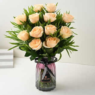 Butterscotch Crunch Cake N Red Roses Bouquet Combo