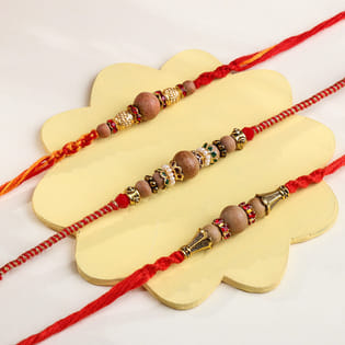 Three Beaded Rakhis With Cashews N Soan Papdi