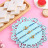 Invoke blessings and style this Raksha Bandhan with our elegant set of three divine Rakhis. Featuring sacred symbols—Trishul, Ganesh Ji, and Om—as the centrepieces, each Rakhi is tied together with beautifully twisted blue threads for a touch of serenity and strength. Perfect for brothers who value tradition and spirituality, this set is more than just decorative—it’s a symbol of love, protection, and divine connection. A meaningful gift to celebrate your bond with grace and reverence.