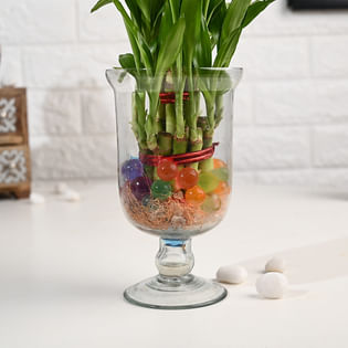 Lucky Bamboo Plant In Glass Vase For Anniversary
