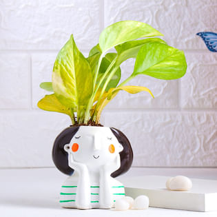Syngonium Plant In Quirky Girl Ceramic Pot