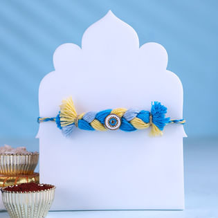 Blue N Yellow Evil Eye Kids Rakhi With Chocolates