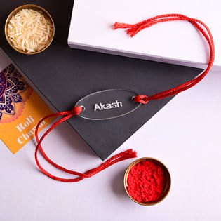 Personalised Rakhi with Acrylic Lamp n Chocolates