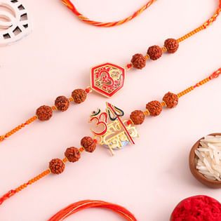 Om Rudraksha Spiritual Rakhi Duo