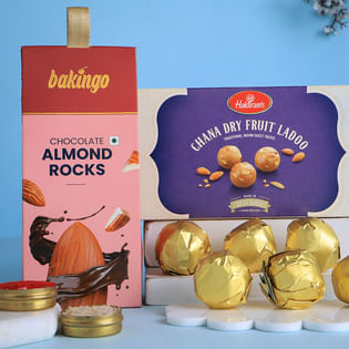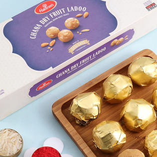 Ethnic Designer Rakhi Set With Chana Dry Fruit Laddoos