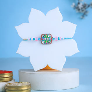 Pastel Stonework Rakhi With Besan Ladoos
