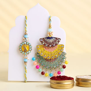Pastel Hues Bhai Bhabhi Rakhis With Thali N Dodha