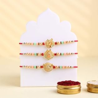Stone Studded Rakhi Trio With Mirror Work Tika Thali