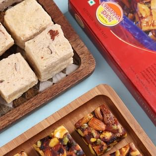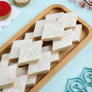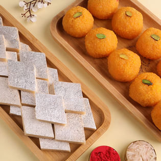Vibrant Hues Floral Rakhi Duo With Kaju Katli