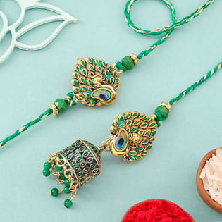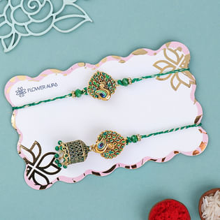 Peacock Grace Bhai Bhabhi Rakhi Set-USA