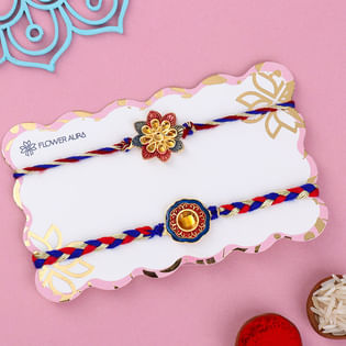 Floral Rakhi Duo With Delightful Kaju Katli N Milk Cake-USA