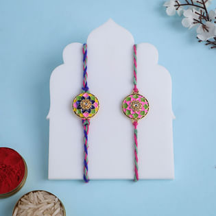 Colourful Designer Rakhi Duo With Besan Ladoo